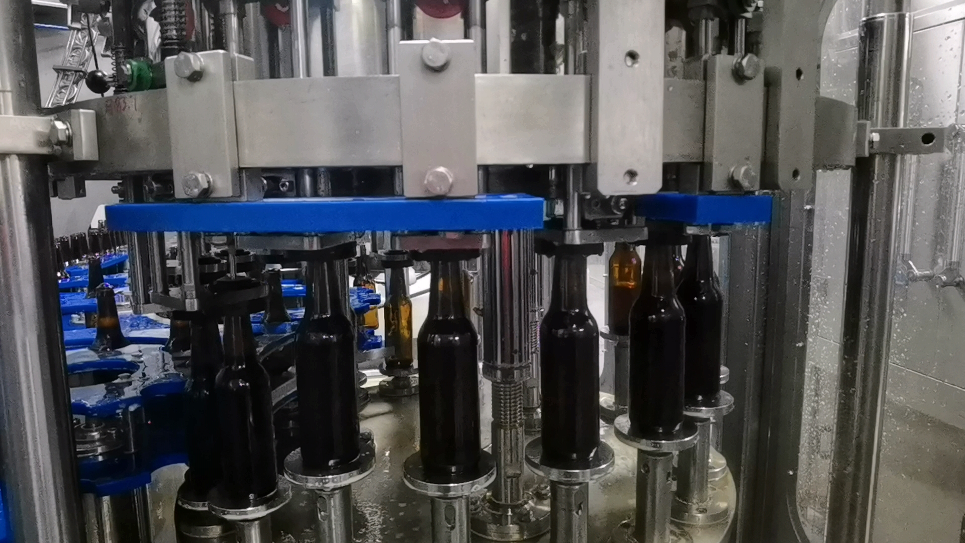 青岛市精酿啤酒工厂采购的玻璃瓶自动化灌装线顺利投产使用。配置自动化洗灌封三合···